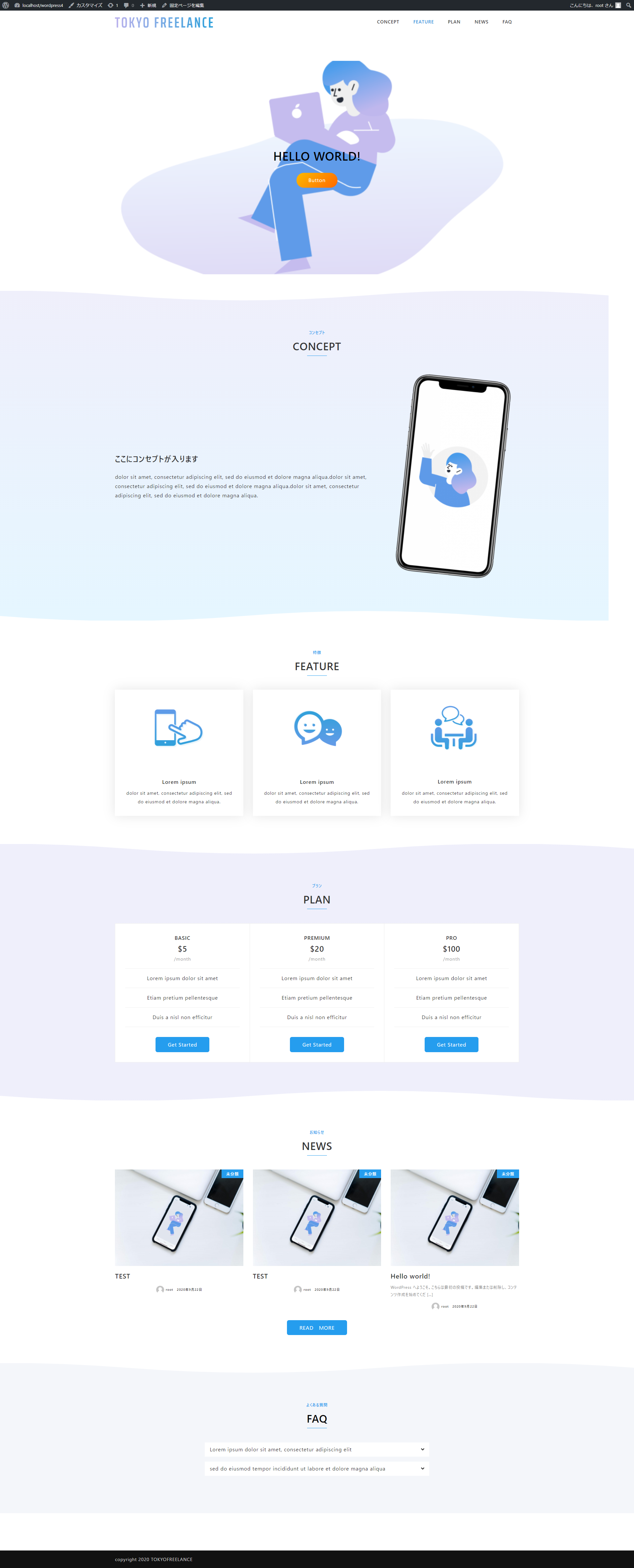 コーディングからWordPress化までの一連の制作が可能です。まだ既存テーマを使ったHP作りも出来ます。